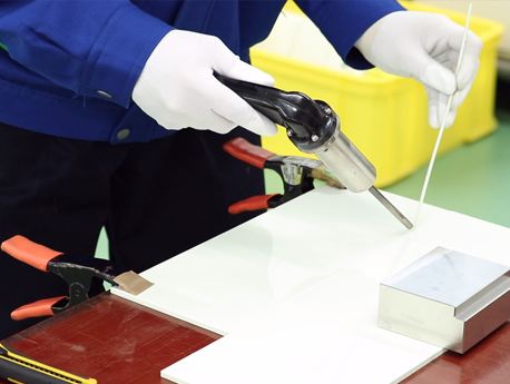 アクリル、PVC、PCなどの樹脂接着・溶接を行います。接着面の気泡を最小限に抑えるため、細心の注意が必要なデリケートな加工のため、用法や特徴を知った上で扱うことが重要です。
